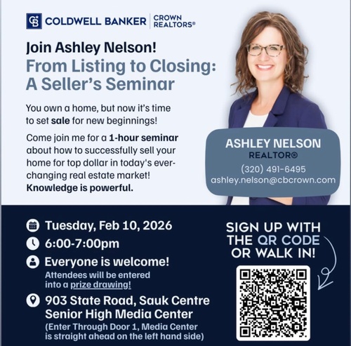 Thinking about selling your home? Join Ashley Nelson, REALTOR® with Coldwell Banker Crown Realtors, for an informative and approachable one-hour seminar designed to help homeowners understand the selling process from start to finish.