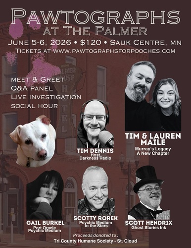 Pawtographs returns to the historic Palmer House Hotel & Restaurant for a two-night paranormal weekend to raise funds for the animals. Join hosts Tim & Lauren Maile and a talented lineup of investigators and mediums for Q&A, a live investigation of the Palmer House, and relaxed social time each night. This unique event mixes spooky fun with community spirit — and supports local pets in need.